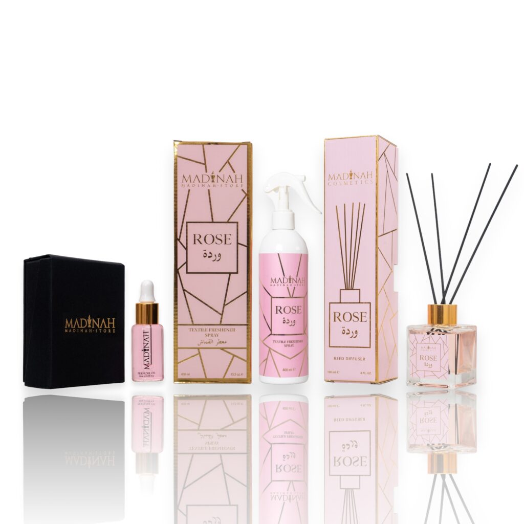 6er Set Textilerfrischer & Duftstäbchen – Misk Al Amber + Black Oud + Rose