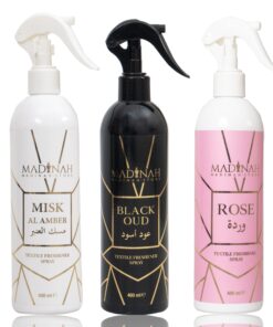 3er Set Textilerfrischer & Raumduft – Misk Al Amber + Black Oud + Rose