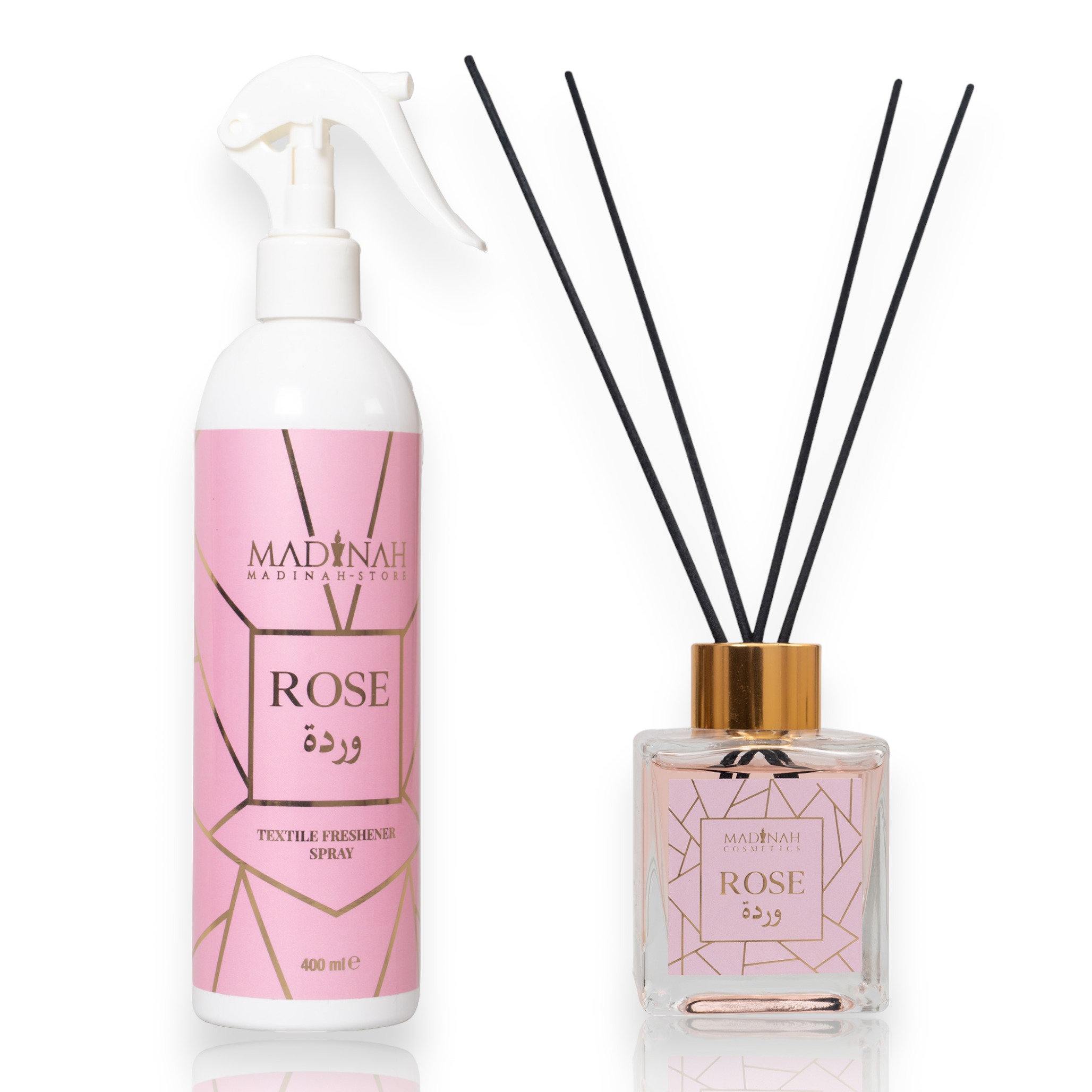 2er Set Textilerfrischer & Duftstäbchen – Rose