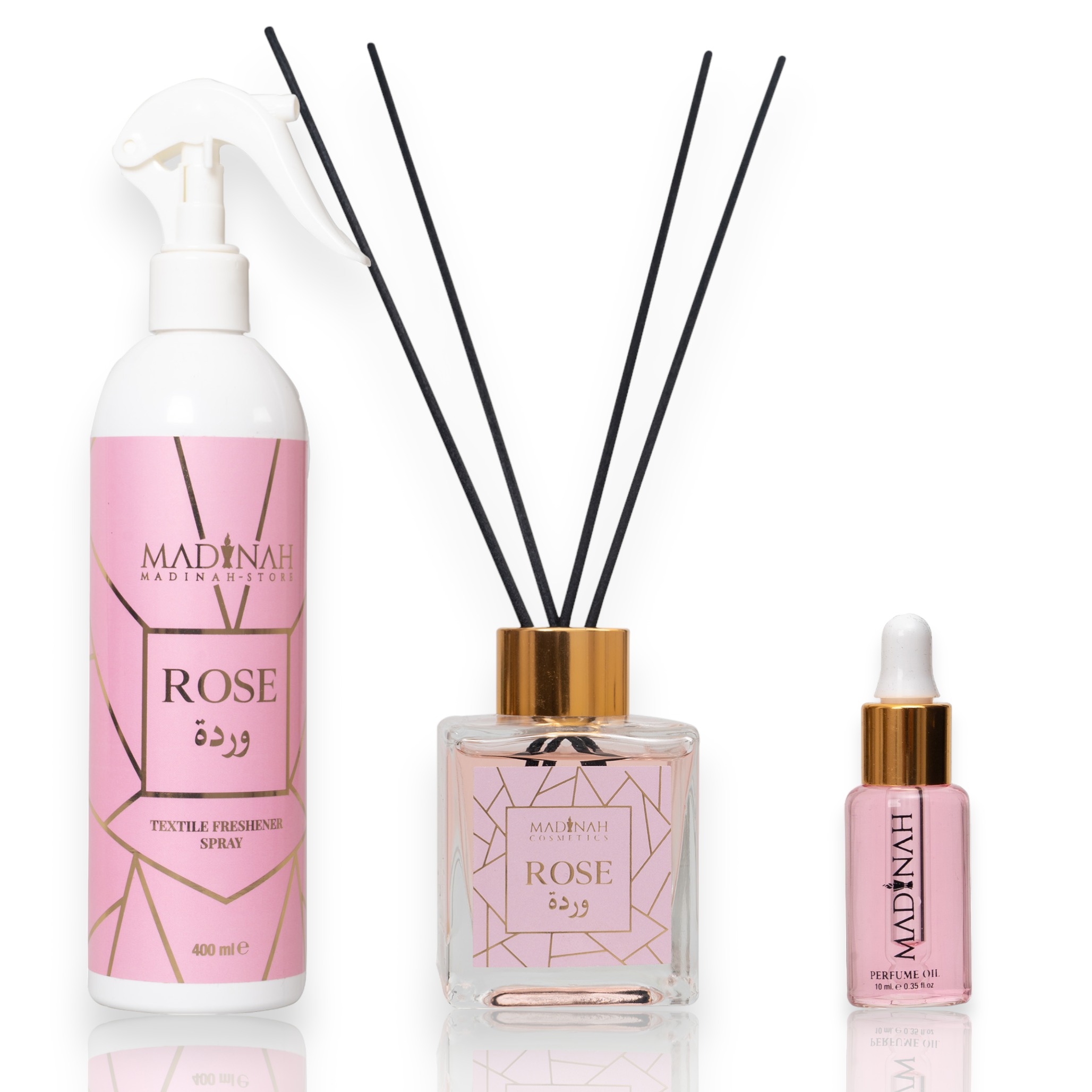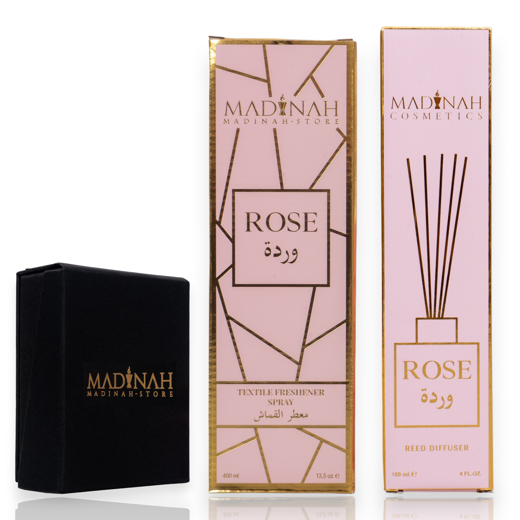 3er Set Textilerfrischer & Raumduft – Misk Al Amber + Black Oud + Rose