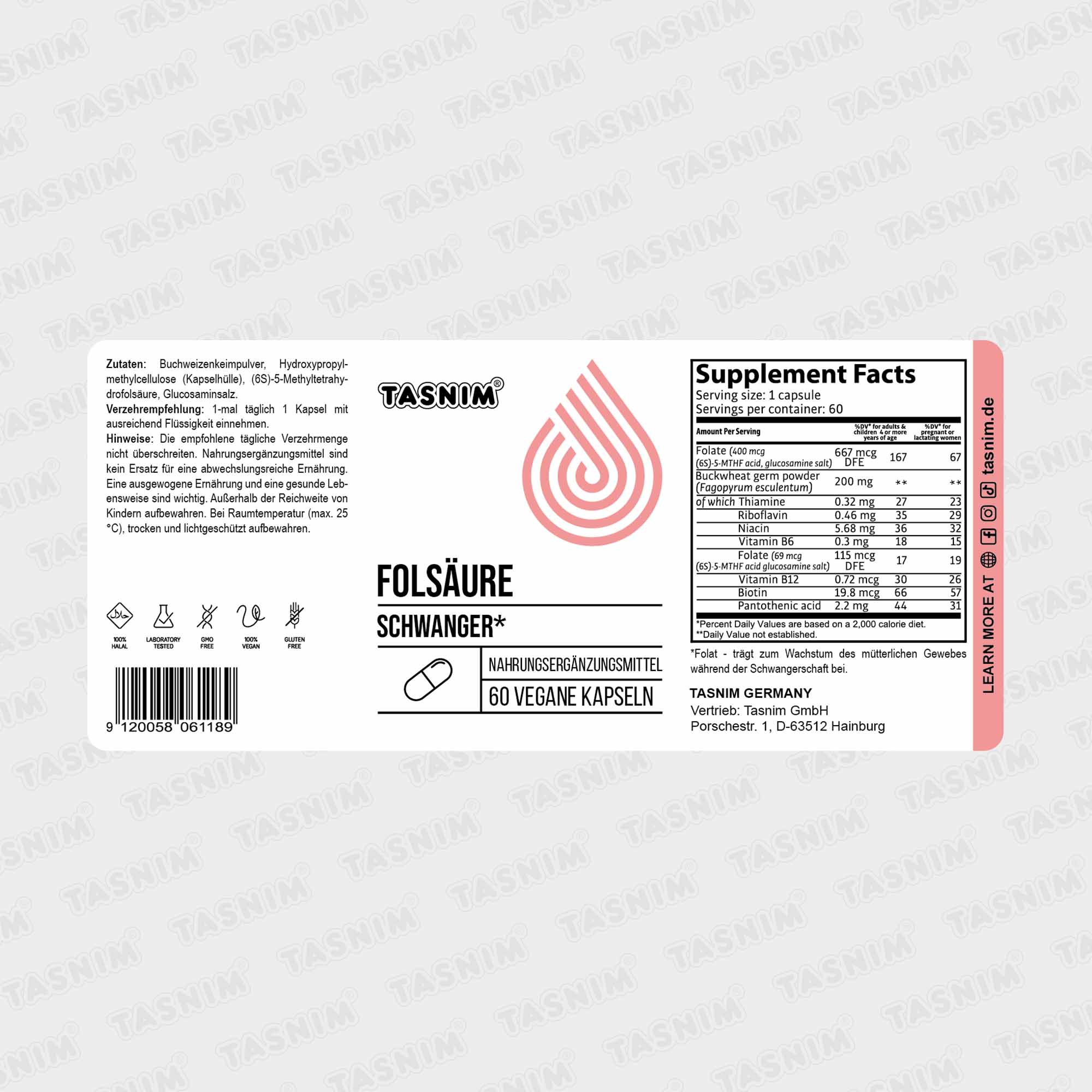 Folsäure Schwanger – 400 µg Methylfolat 60 vegane Kapseln