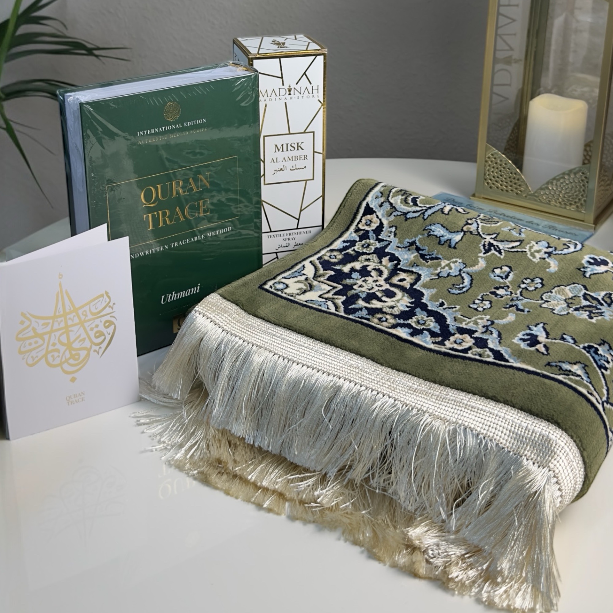 Feiere den heiligen Monat Ramadan und Eid mit einem Geschenk, das Herz und Seele berührt. Unser exklusives Ramadan & Eid Geschenkset vereint hochwertige spirituelle Schätze, die die Atmosphäre von Madinah und die Schönheit des Glaubens in dein Zuhause bringen.