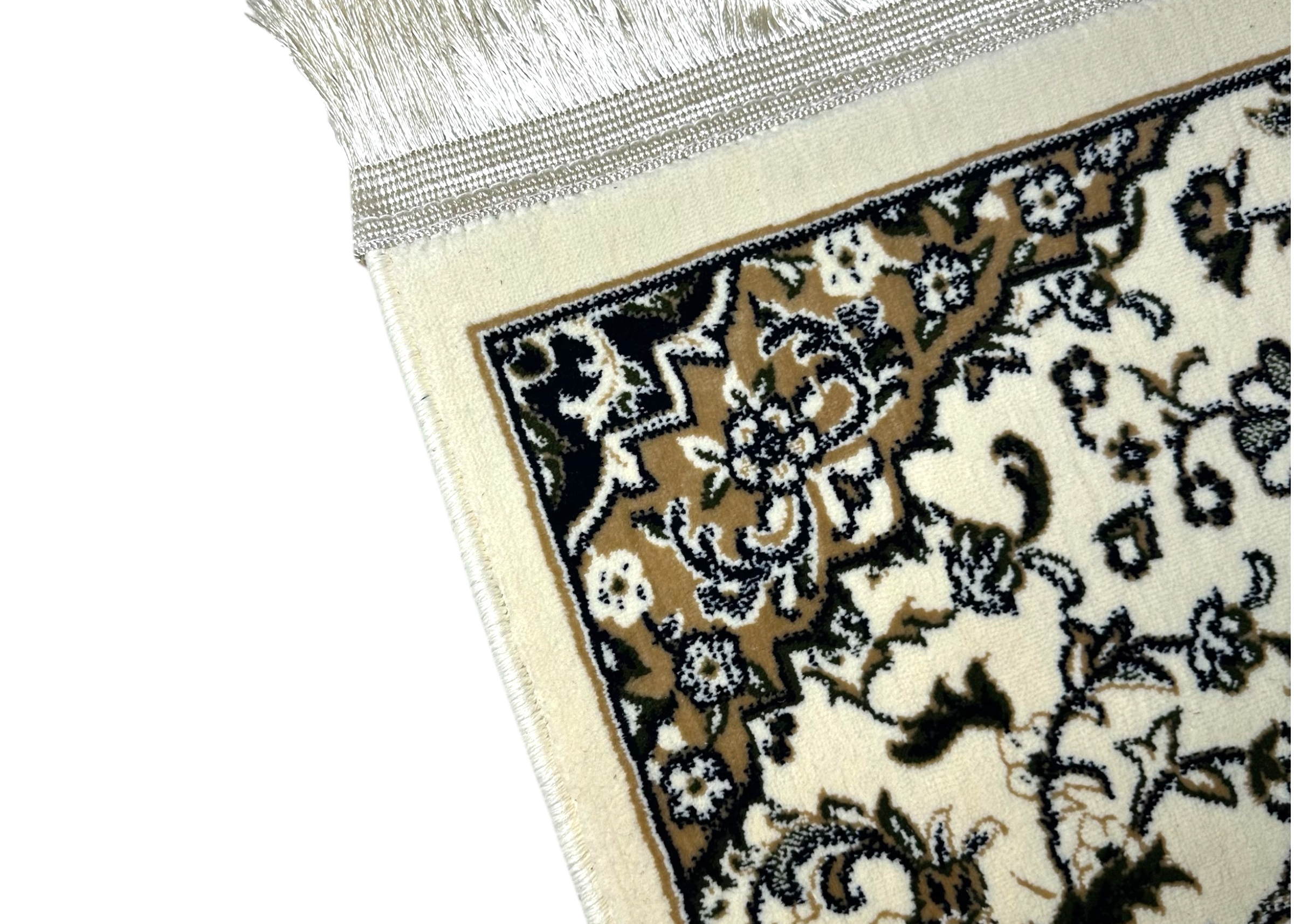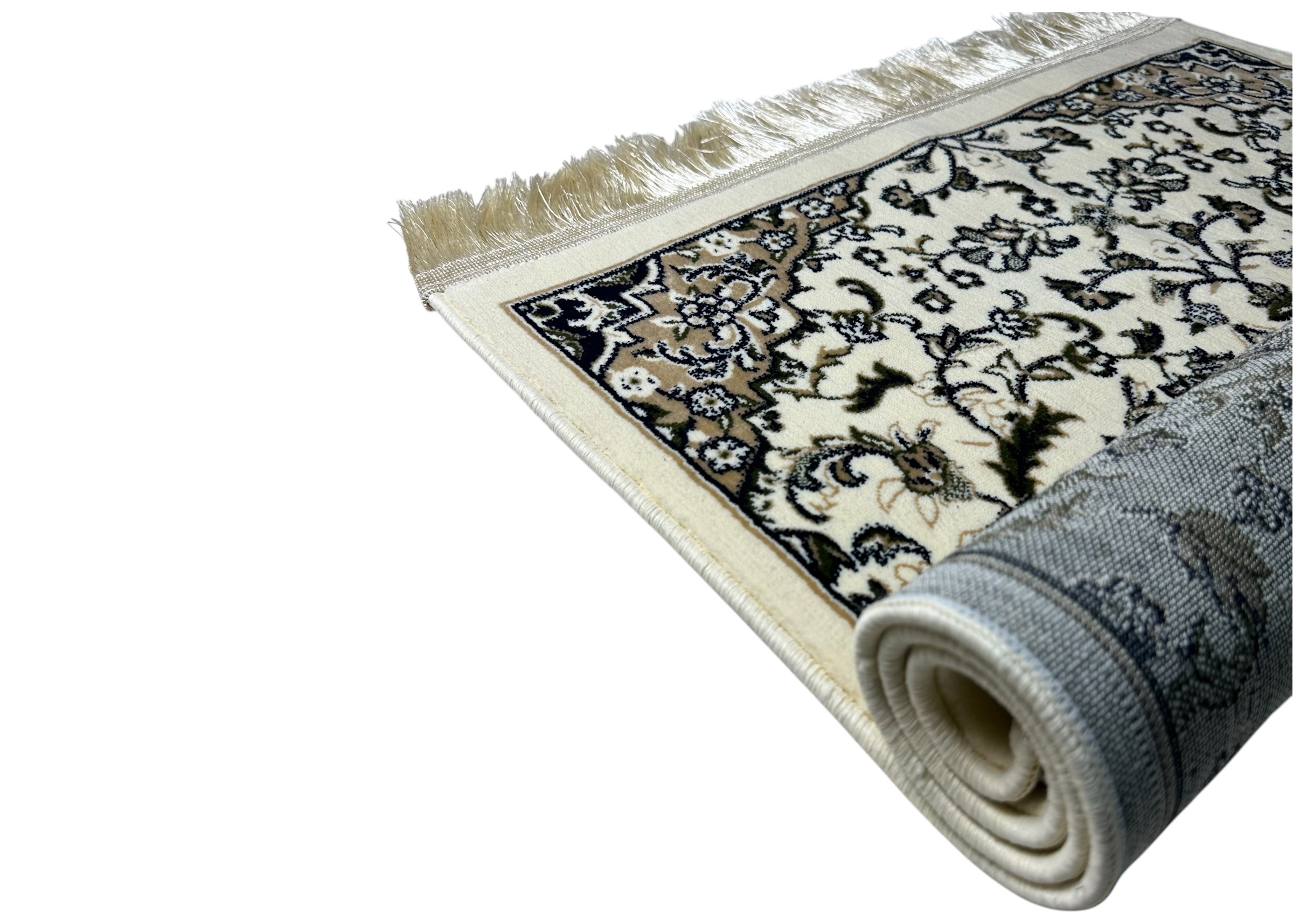 Holen Sie sich ein einzigartiges Stück der spirituellen Atmosphäre aus der heiligen Prophetenmoschee direkt in Ihr Zuhause. Unsere Teppiche sind originalgetreue Reproduktionen der Teppiche, die in der Rawdah und der gesamten Moschee in Madinah zu finden sind – bis ins Detail identisch im Design.